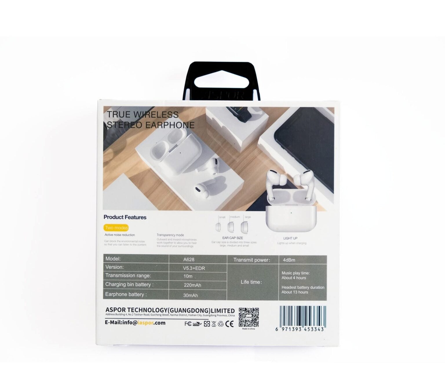 The ASPOR A628 is a true wireless earbud set designed for users who value portability, comfort, and reliable audio performance. With Bluetooth connectivity, noise isolation, and a lightweight design, these earbuds are ideal for music, calls, and on-the-go convenience.