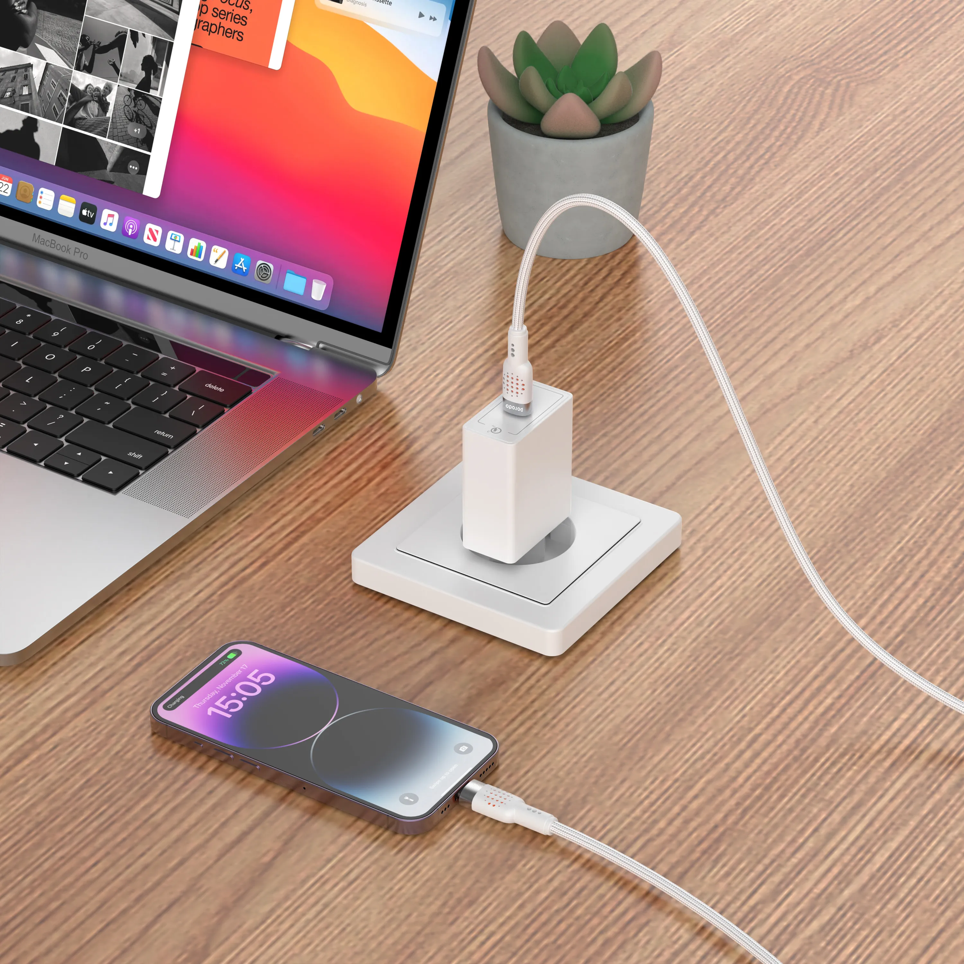 PORODO USB C TO LIGHTNING ALUMINIUM BRAIDED CABLE PD30W 1.2M WHITE PD-CBL-0010-WH