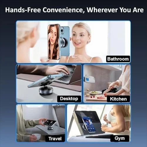 The Vacuum Magnetic Suction Phone Mount offers a comprehensive solution for hands-free device usage across various settings. Compatible with contemporary smartphones, including iPhones and Android devices, this mount utilizes a robust magnetic grip and vacuum suction technology to ensure secure device placement. This design facilitates hands-free operation in diverse environments, such as vehicles, fitness centers, and bathrooms. The mount's features include a powerful magnetic hold, ensuring device stability under demanding conditions, and 360-degree adjustable viewing for optimal positioning during video playback, workouts, or video calls.